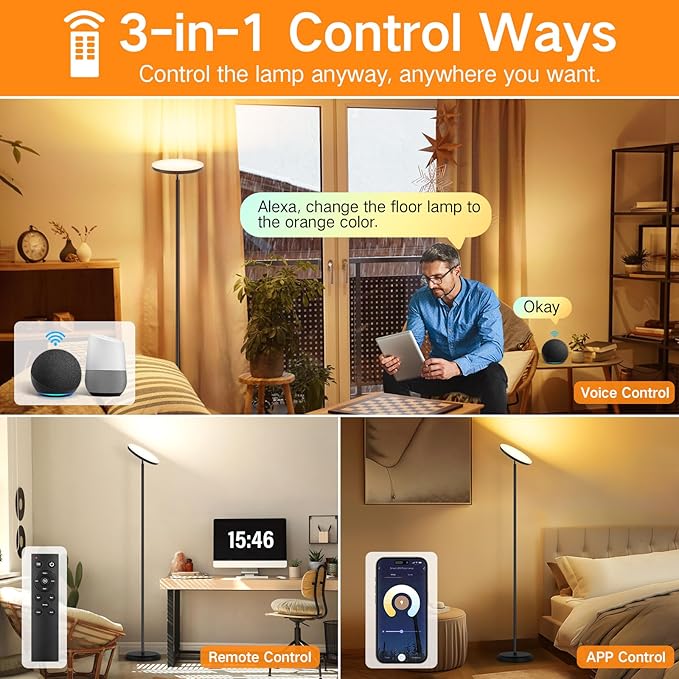 - ✔【3-in-1 Control Ways】: The Outon LED floor lamp comes with a super handy remote control and App Control, which makes it easy to choose different lighting options. You can lie in bed or work from across the room so you don't have to be right by it! Furthermore, our torchiere floor lamp works with Alexa, or Google Assistant to help you adjust lighting with ease to achieve hands-free voice control!