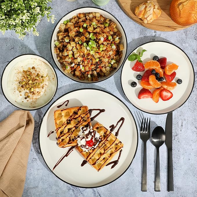 Gibson Home Oslo 16 Piece Porcelain Dinnerware Set,White w/Black Rim Rim, Service for 4 (16pcs)
