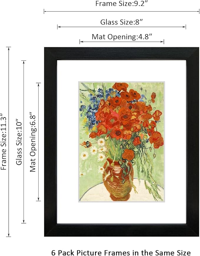 - EXQUISITE DESIGN: 6 Pack picture frames in the same size. Perfect for pictures 5x7 with Mat or 8x10 Without Mat. An ideal house warming gift for your new home or office.