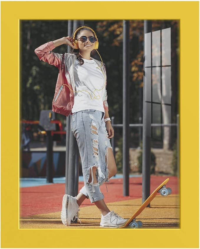 Renditions Gallery 8x10 inch Picture Frame High-end Modern Style, Made of Solid Wood and High Definition Glass Ready for Wall and Tabletop Photo Display, Yellow Frame