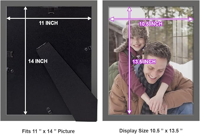 - 🎀【Size】The photo size (inner size) is 11”x14”. Actual frame size (finished size) is 12.5”x15.5”x 0.75”.