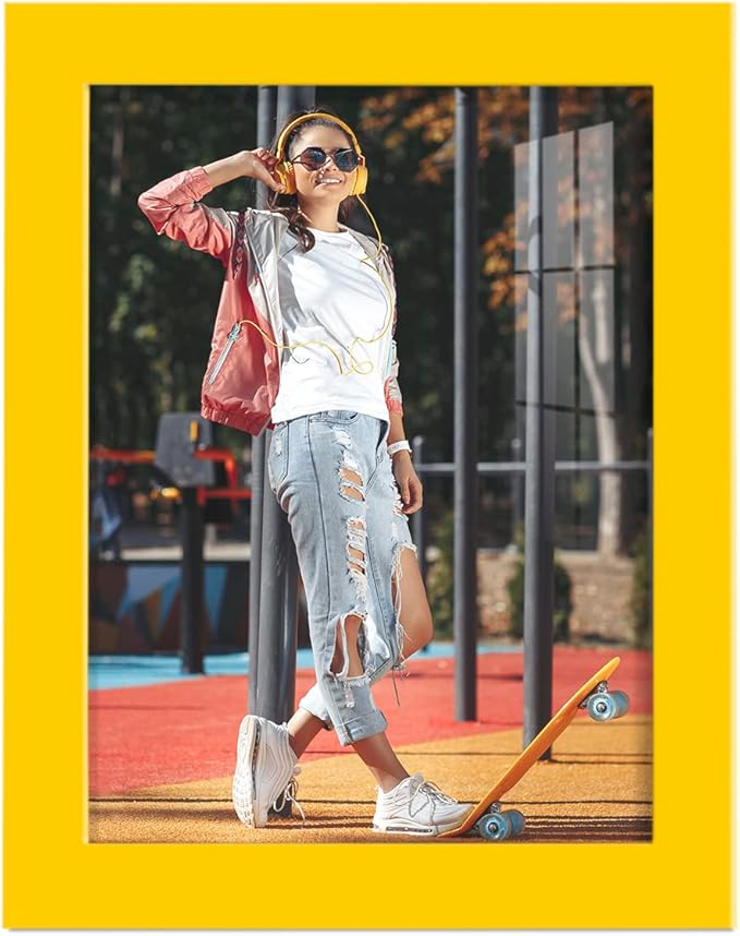 Renditions Gallery 6x8 inch Picture Frame High-end Modern Style, Made of Solid Wood and High Definition Glass Ready for Wall and Tabletop Photo Display, Yellow Frame