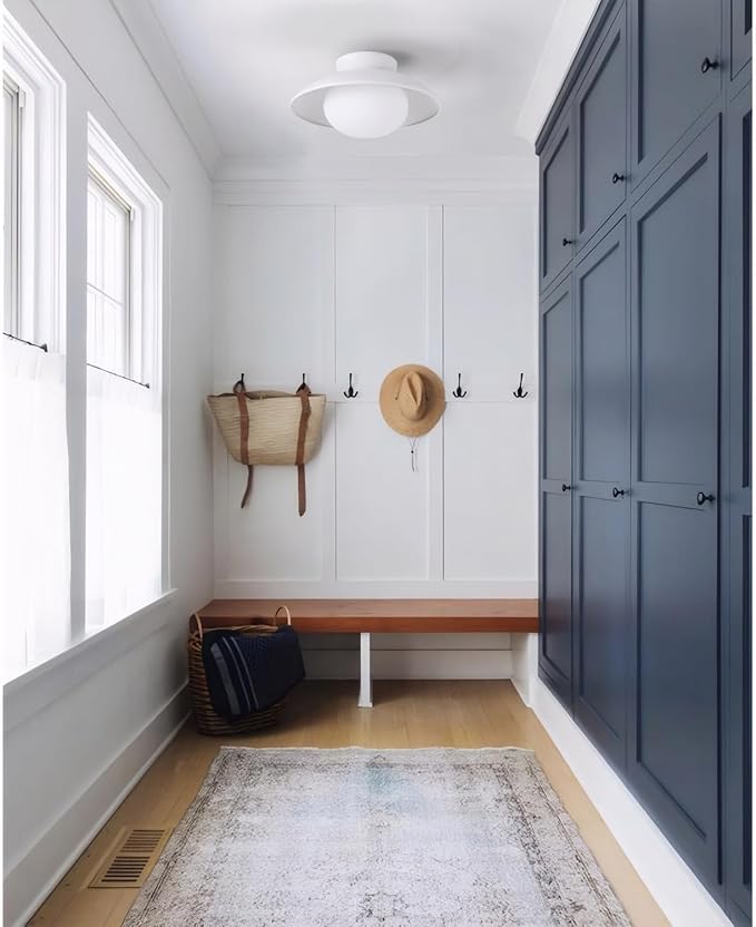 Soft White Semi Flush Mount Ceiling Light Fixture, Bowl Lampshade Style Vintage Close to Ceiling Light Fixture, Modern Indoor Flush Mount Light for Bedroom, Entryway, Corridor, Room Decor Lamp
