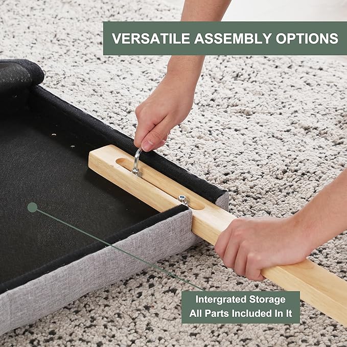 - 【PACKAGE DETAIL】A package contains a headboard panel, two wooden legs, and a kit of parts. All parts are included in back compartment!