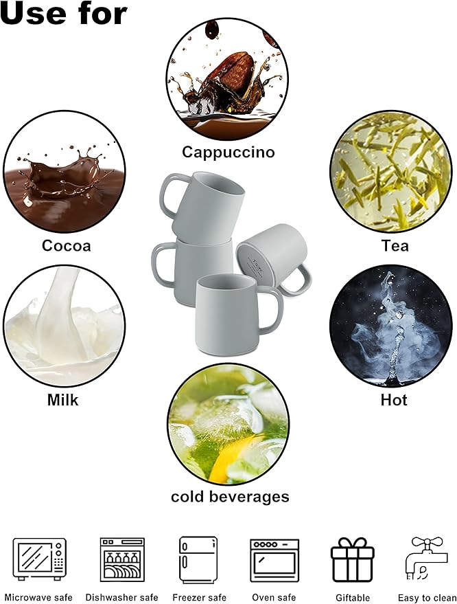 T-WARE 16 Oz Coffee Mugs, Matte Light Grey Mug Set of 4, Ceramic Mugs Coffee, Solid Color Coffee Cups Ceramic