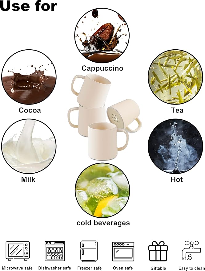 T-WARE 16 Oz Coffee Mugs, Matte Beige Mug Set of 4, Ceramic Mugs Coffee, Solid Color Coffee Cups Ceramic