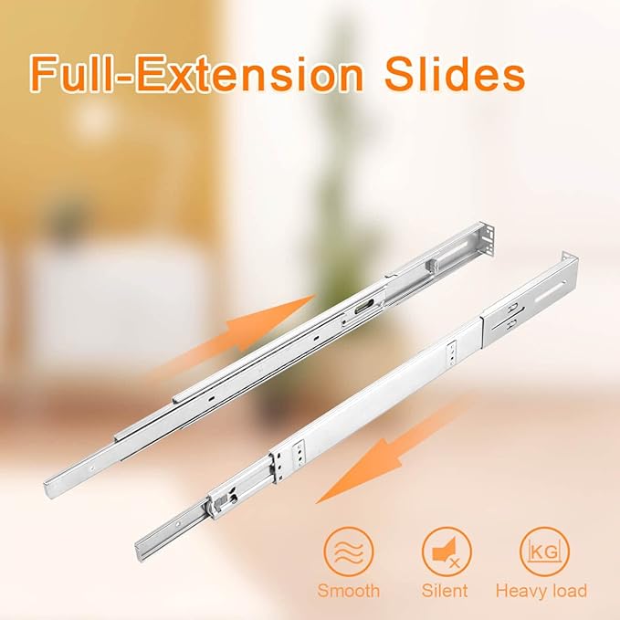 - Smooth And Quiet Movement. The exclusive glides we use are premium ball-bearing slides featuring heavy-load capacity and ultra quiet running.f the cabinet.Each tier can hold up max weight is 75 lbs without stretching, the weight capacity of each tier in the extended position is less than 40 lbs.