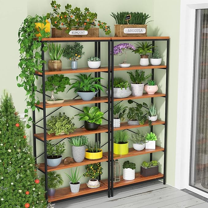- 【6 TIER MULTIFUNCTIONAL BOOKCASE SHELF】 This 6 shelf large corner bookshelf provides a very wide storage space,you can use it display your decorations. Picture frames,books,figurines, glass jars,novels,speakers or potted plants,crafts and etc.Vintage design meets rustic industrial style in this wooden bookcase, ideal for your home office,bedroom, living room, kitchen ,study room,bathroom, or entryway