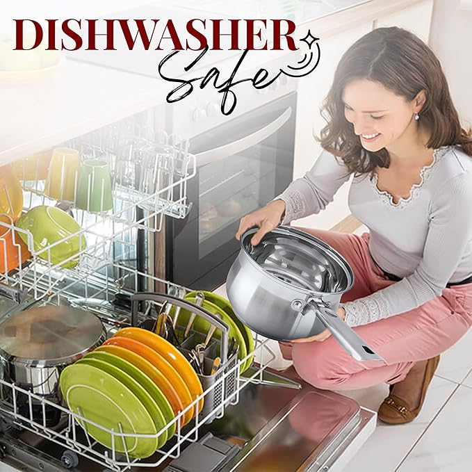 - EASY TO CLEAN: After each use, simply wipe it down with hot water or place it in the dishwasher safe to clean and remove excess fat and food. The saucepan is nonstick for cooking with a handle making drying easier with Stainless Steel coating. The heavy-bottom saucepan can easily meet people's cooking needs, and you can also enjoy the fun of cooking with your family.