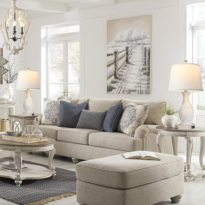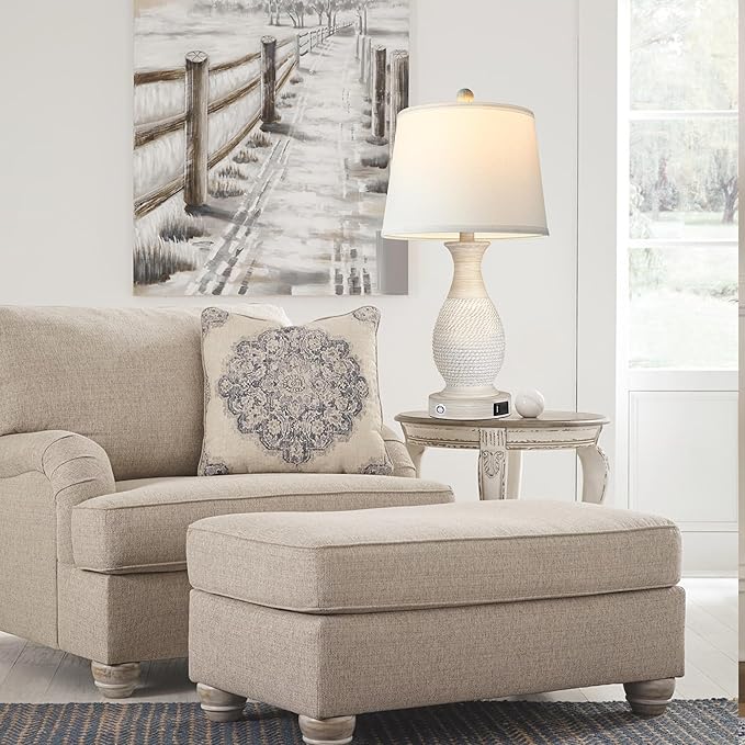 - Modern farmhouse-style 26inch Table Lamps Set of 2: This pair of table lamps of Crafted from polyresin, its base showcases a curved silhouette and raised embossed ropes along the bottom for a touch of texture. This large table lamp is topped with an elegant drum shade in white fabric. A decorative finial eventually tops off the entire look. Trust me you will fall in love with it at a glance.