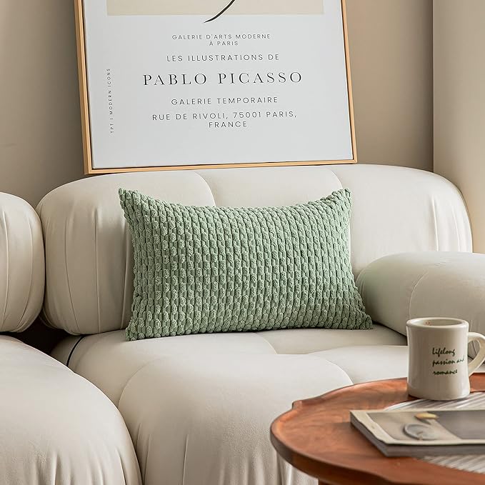 Kevin Textile 2 Packs Lumbar Decorative Throw Pillow Covers 12x20 Inch for Living Room Couch Bed Sofa Spring Soft Striped Corduroy Rectangle Cushion Case 30x50 cm Farmhouse Boho Home Decor Sage Green