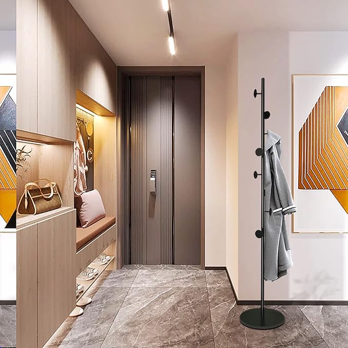 - Stable and Functional: Made of reinforced iron and weighty slate base, the black coat tree performs sturdy hanging for your out fits, clothes, jackets, backpacks, and ties.
