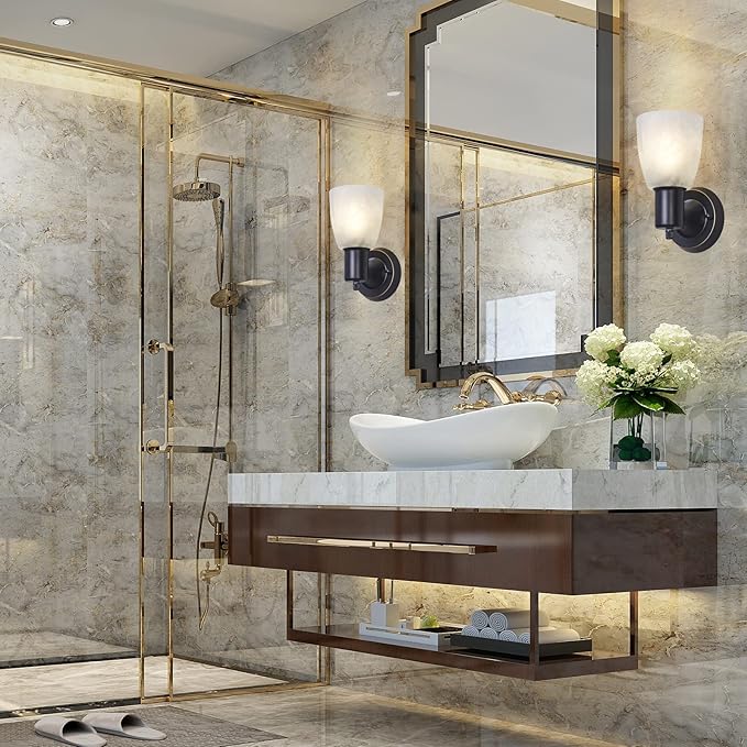 - Lamps Set Upward or Down: The black vanity lighting fixtures are generally installed on the top of the head when as mirror lights or porch lamps, which can be installed downward for lighting; If you need to use a lamp when reading or doing other things sitting on a bed or stool, you can install it up in a lower place. due to the simple appearance design of the bath wall light, it can be installed up or down direction as you like, it means that you could fully enjoy the fun of decorating your own house.