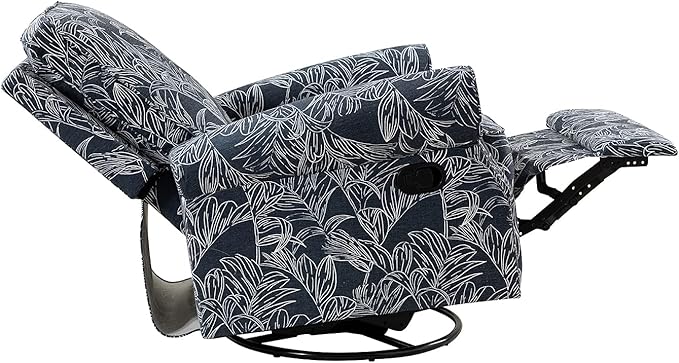 - Rocking and Reclining- Has a solid metal base that easily supports 360-degree swivel rotation and rocking capabilities, while reading book, watching TV for added comfort, and the high headrest can well support your neck when you recline in it. This manual recliner has two adjusted angles: 105‘ and 142’; use the easy-to-reach lever to control the footrest and backrest, to help you find the most comfortable relaxing posture.