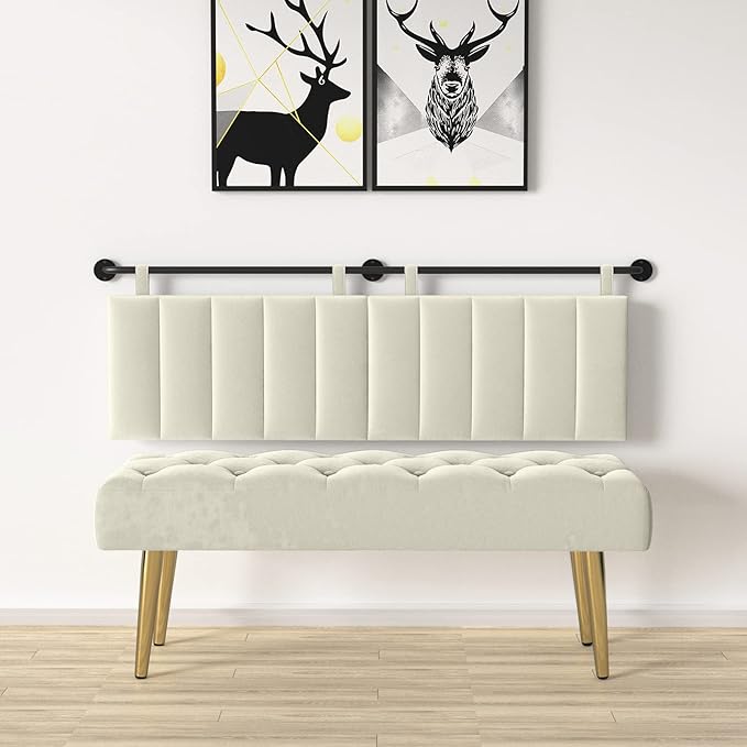 - 【Fabric Upgrade headboards】Headboard with soft velvet upholstery fabric. Feel touch so comfortable compare with linen fabric. For an industrial look, the hanging headboard will make a statement in your bedroom as the focal point of the room which use the sturdy black metal rail to hang your channel-tufted headboard brings modernity and comfort all at once.