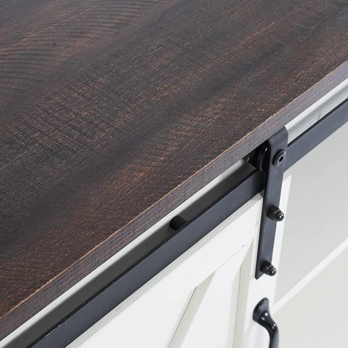 Rainbow Sophia TV Stand, Storage Cabinet with Sliding Barn Doors and Adjustable Shelves, Modern 28”H, Vintage White/Espresso