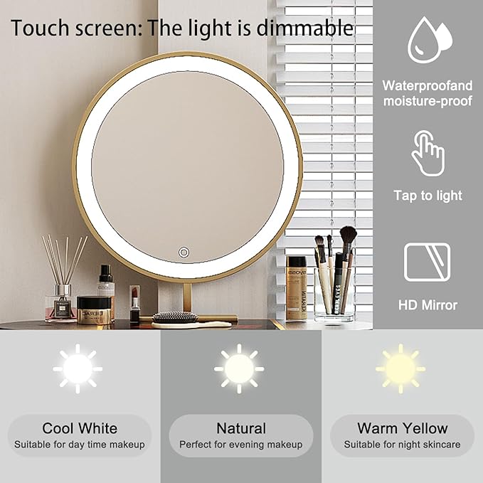 - 【Adjustable LED Mirror】Flicker-free and glare-free, this mirror helps you achieve a flawless makeup look, bringing the professional salon experience right to your home.