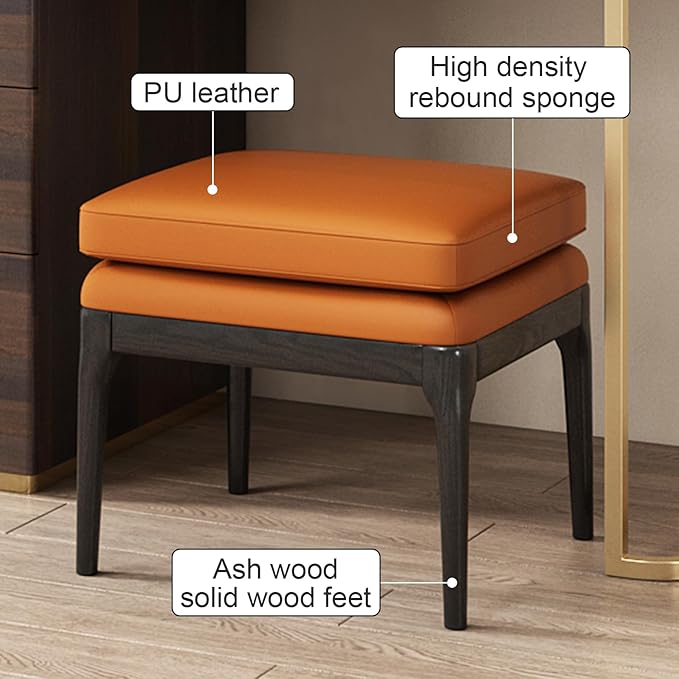 - 【Makeup Stool】The makeup stool is made of solid white wax wood frame and leather upholstery. It is moderately soft and hard, with a large support area, making it comfortable to sit on, and it is relatively heavy.