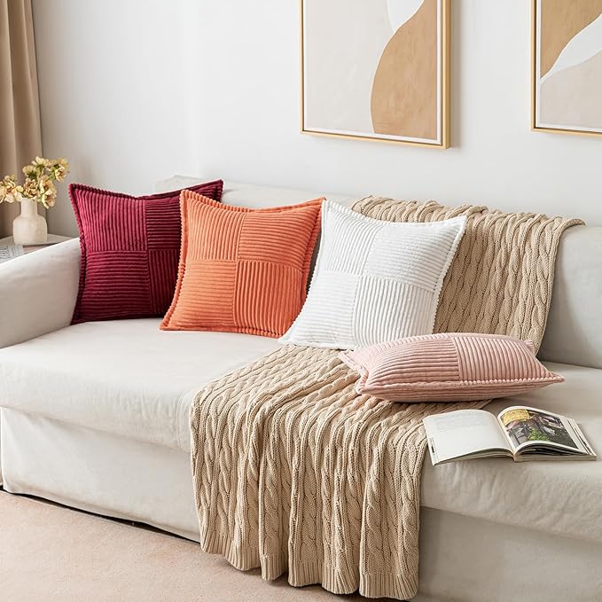- 【Unique Design】 The corduroy stripes are spliced in different directions in a unique design. The artful arrangement creates an eye - catching visual effect, making them a perfect decorative accent for your couch or bed.