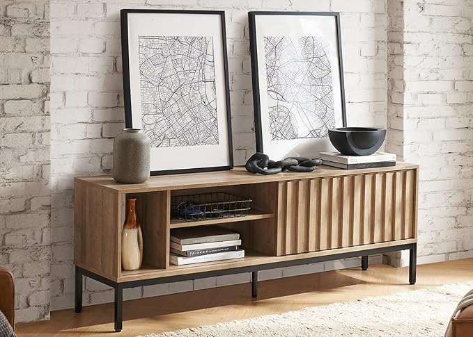 mopio Norwin TV Stand, Rustic Modern Industrial Television Stand for 60/65/70 inch TV, Fluted Entertainment Center with Storage, Wood Media Console Credenza Cabinet Table for Living Room (Oak 64")
