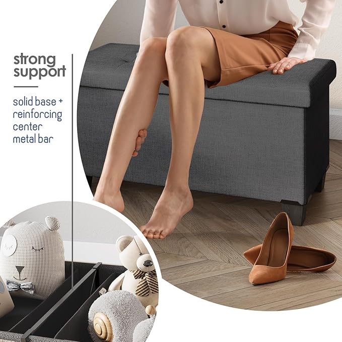 - STURDY, STABLE LID: The cushioned lid of our ottoman with storage for bedroom is comfortable and supportive, with an invisible hinge design that allows it to be bent and lifted up from either side without removing the entire lid.