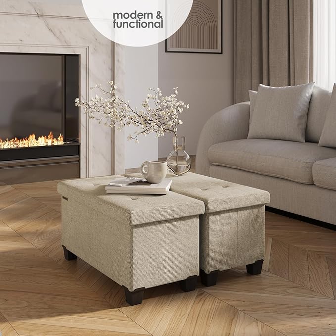 - TUFTED OTTOMAN BENCH WITH STORAGE: Our foot rest ottoman with storage for living room decor transforms your space and reduces clutter, and can be used as a storage ottoman coffee table or additional seat, supporting a max weight of 660 lbs.
