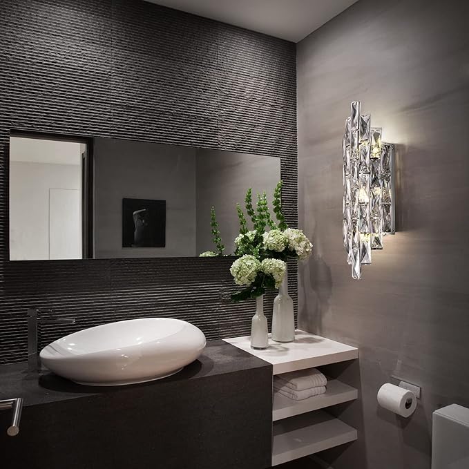 - 【Modern Chrome Luxury Crystal Wall Lights】This chrome crystal wall lights is made coating process, anti-corrosion and anti-rust metal lamp body and K9 crystals. Beautiful crystal design, and the metal cover forms a balance between modern industry and classic elegant style