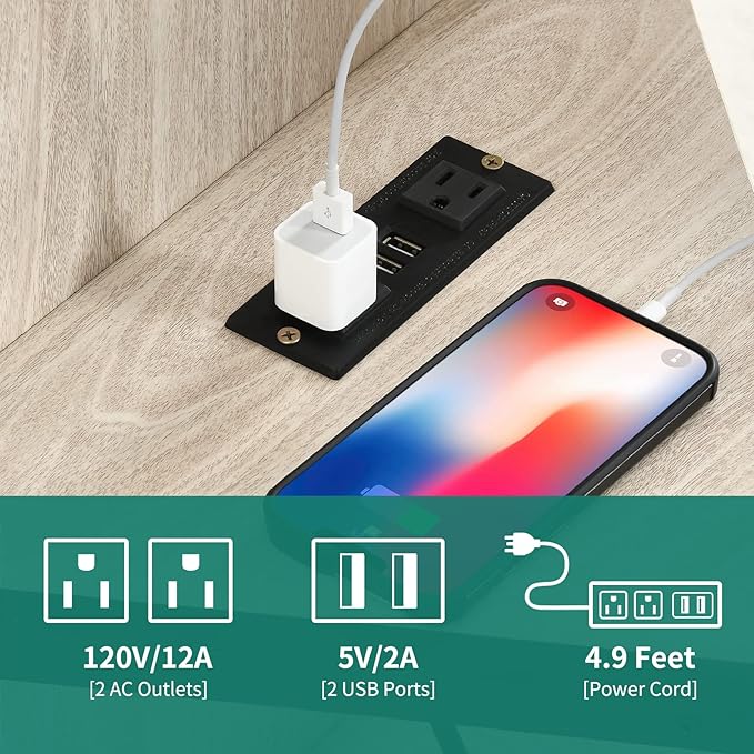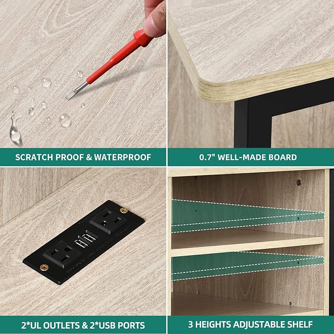 - TV media console shelf with power outlet and USB ports: The entertainment center TV stand shelf with power outlets built-in 2 USB ports and 2 standard plug outlets, so it can meet the needs of different equipment, which is convenient to charge your TV, DVD, WiFi router, and etc. This is a real combination of stylish and functional