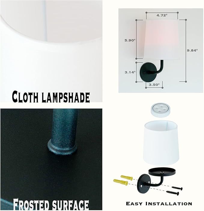 - Easy to Install: Cordless Design, don’t need hard wiring The wall light fixture can be installed with simple steps and included installation user manual