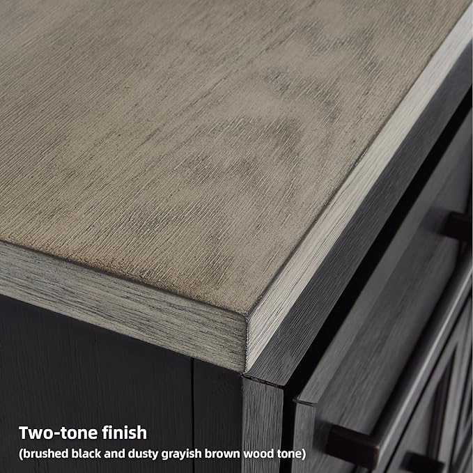 - CASUAL CONTEMPORARY: A two-tone color scheme features a brushed black accented with a dusty grayish brown wood tone. And there's plenty of space to accommodate your clothes