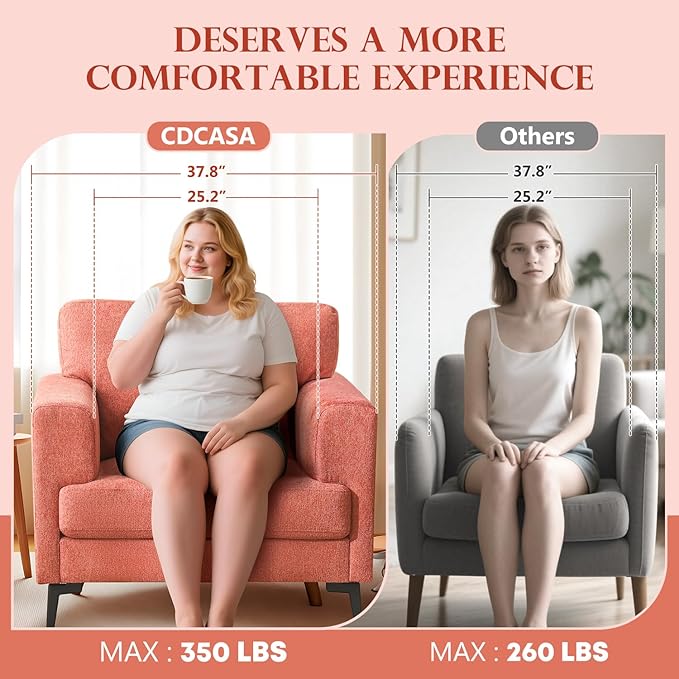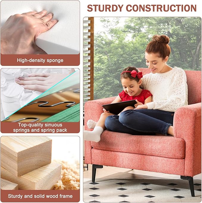 - ✔【Unique Design & Multi-Scene Use】This accent chair features a spacious seat with ample 6.3‘’ width armrests; back cushion is removable, The seat cushion nestles against ample armrests, while the removable back cushion is easily plumped up to keep looking great over time. it's the perfect addition for your living room, bedroom, office or entryway.