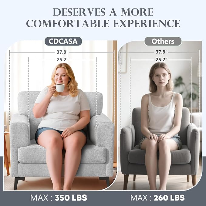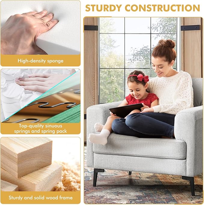 - ✔【Premium Material】upholstery and front-edge wood trim , solid wood frame with concealed stabilizing feet; performance linen fabric upholstery and front-edge wood trim, suspension for long lasting comfort and support ,The maximum load capacity of this product is 350LBS.