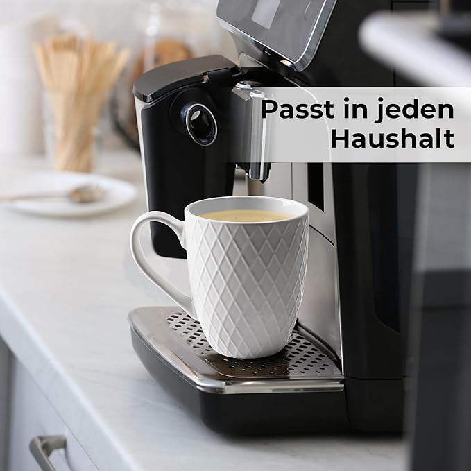 MIAMIO - Coffee Mugs set of 6 / Coffee Cups - 6 x 14 Oz Ceramic Mugs - Large Coffee Mugs - Microwave & Dishwasher safe - Palmanova Collection (White)