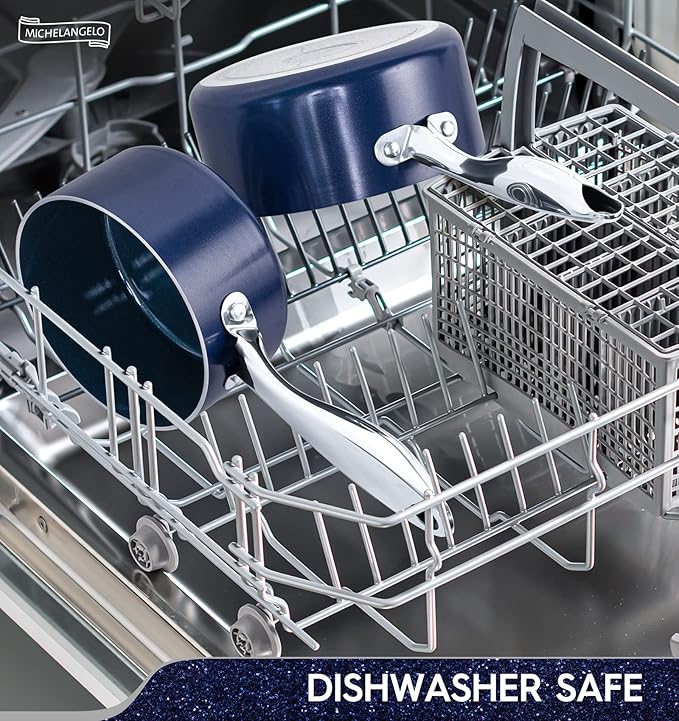 MICHELANGELO 3 Quart Saucepan with Lid, Nonstick Ceramic Sauce Pan with Stainless Steel Handle, 3 Qt Saucepan with Lid Induction Compatible, Oven Safe, Blue