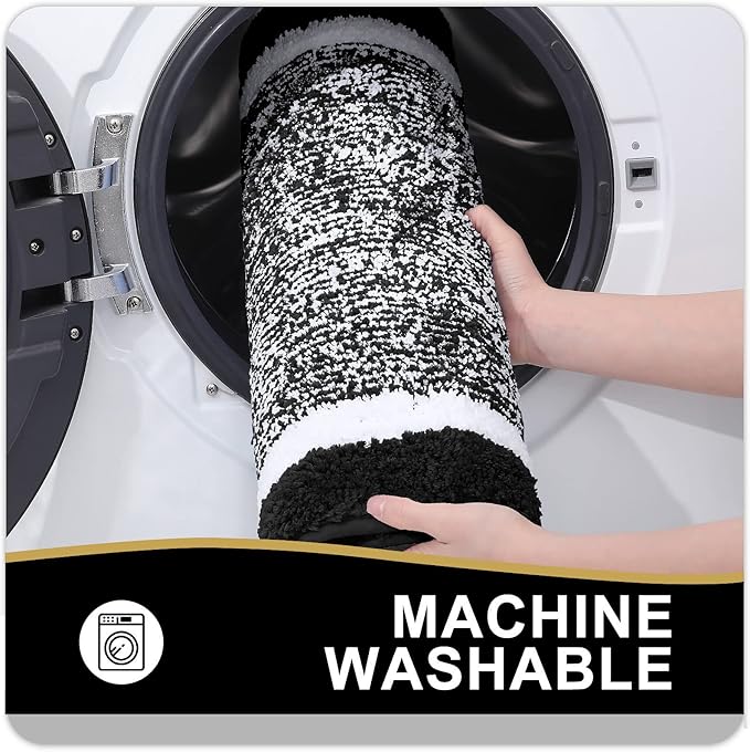 - [Ultra-Absorbent & Quick Dry] The soft microfiber fabric, will not let the water drip on to the floors, when you are stepping out of your bath, shower or getting ready by the sink. Further, there is moisture trapped inside the mat's deep pile, which allows the rug to dry quickly and cleanly.