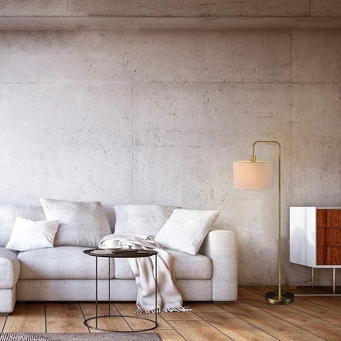 - STATEMENT PIECE: a 58-inch height, beautiful brass finish, and white linen shade creates a statement piece perfect for any room in your home