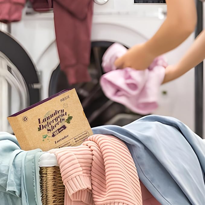 Poesie Laundry Detergent Sheets Lavender Scent 160 Count Soap Sheets Non-Plastic Hypoallergenic Portable Liquidless HE Washing Detergent Strips for Save Place Traveling No Waste
