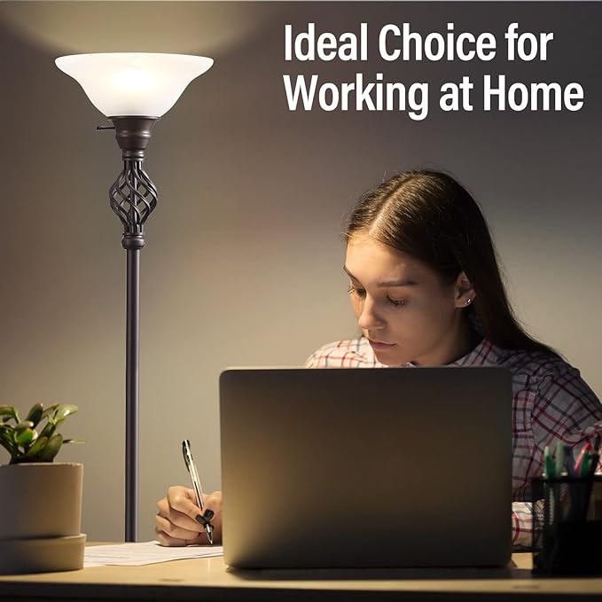 Torchiere Floor Lamp for Living Room, LED Standing Reading Light for Bedroom with Glass Shade for Living Room Corner Bedroom Home Office,Bulbs Included (Red Brown,Glass 1 Head)