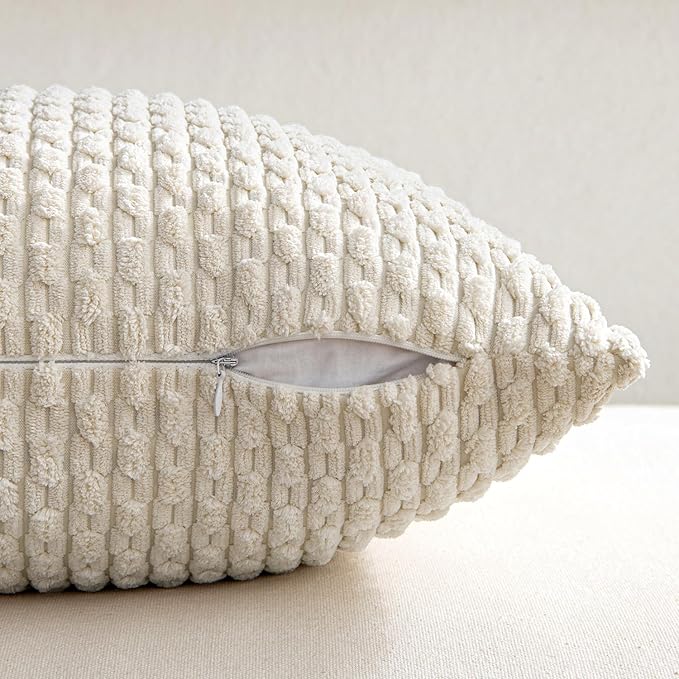 MIULEE Throw Pillow Covers Soft Corduroy Decorative Set of 2 Boho Striped Pillow Covers Pillowcases Farmhouse Home Decor for Spring Couch Bed Sofa Living Room 18x18 Inch Cream White