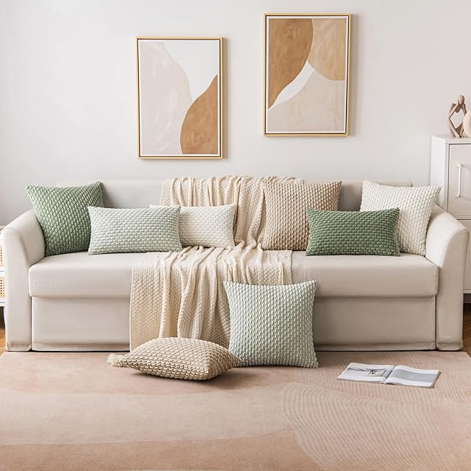 MIULEE Throw Pillow Covers Soft Corduroy Decorative Eruo Sham Set of 2 Boho Striped Pillow Covers Pillowcases Farmhouse Home Decor for Couch Bed Sofa Living Room 24x24 Inch Tan