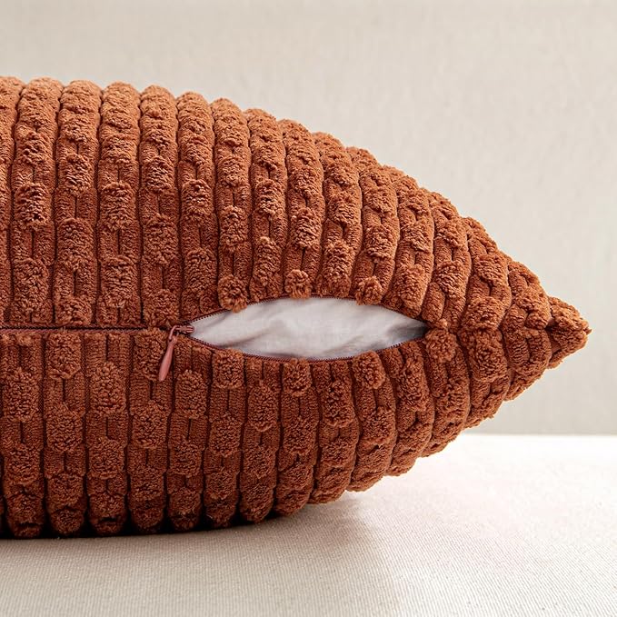 MIULEE Fall Rust Throw Pillow Covers Soft Corduroy Decorative Set of 2 Boho Striped Pillow Covers Pillowcases Farmhouse Home Decor for Couch Bed Sofa Living Room 18x18 Inch