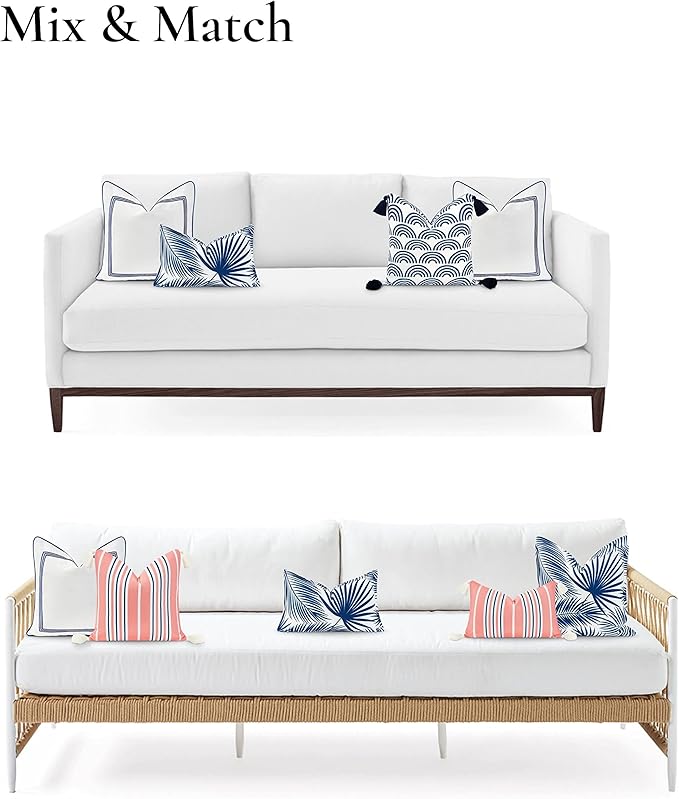 - Refined Coastal Design: This lumbar pillow cover features navy blue palm leaves on white background, bringing in a breathe of fresh tropical texture and style to your decor. Perfect for spring, summer, fall and coastal decor.