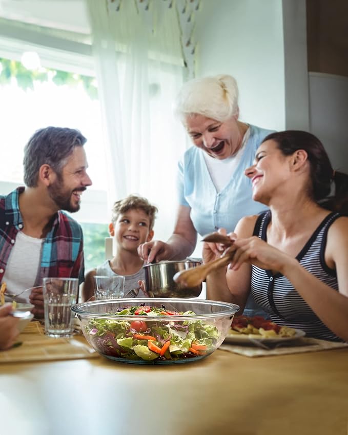 - 🧉Cleans Easily🫖: Watch your mayo or cake mix come together in real time – no guessing if it’s blended right! The wide base keeps ingredients from flying out (unlike those tall, narrow bowls that make a mess). Cooking just got way less stressful. No stuck-on spaghetti sauce or turmeric stains here! Smooth glass wipes clean easily, and it’s dishwasher-safe. Plus, it won’t scratch up even after years of use – no more replacing flimsy bowls every few months.