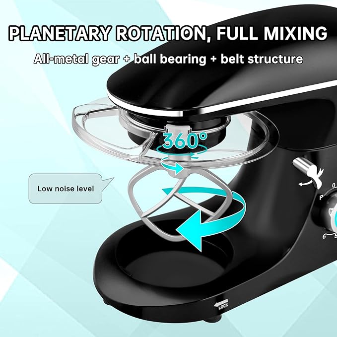 - 【660W MOTOR & 6 SPEEDS OPTION】SEEDEEM kitchen stand mixer with 660W high-performance motor but lower operation noise.By turning the gear knob, you can select 6 different gear speeds to choose the desired mode. The machine can stably operate from low to high speed mixing at a constant speed. Multiple gears and speeds ensure you can choose any delicious food you want.