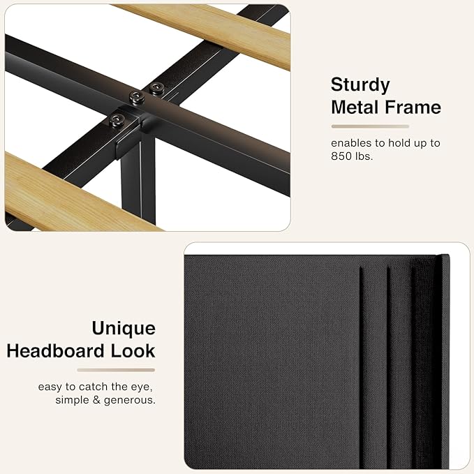 - Comfortable Headboard Design: Featuring a wing-shaped headboard, this full bed frame keeps your mattress and pillows securely in place. The soft padding and fabric make it extra comfortable, giving you a good spot to unwind or read in bed