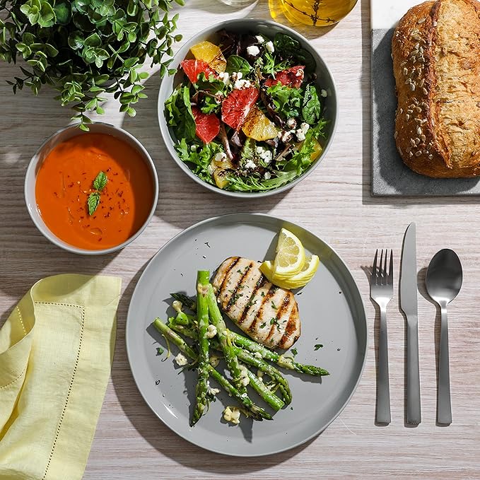 - WHAT'S IN THE BOX: Service for 4 that includes 4 of each of the following: 10.5” Dinner Plates, 7.75” Dinner Bowls, and 6” Cereal Bowls