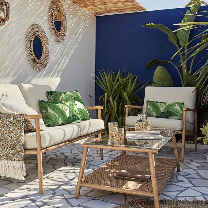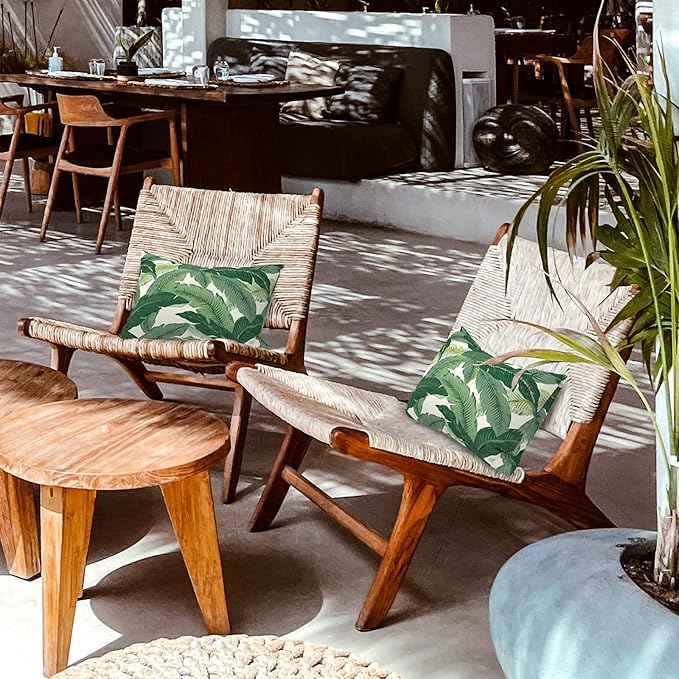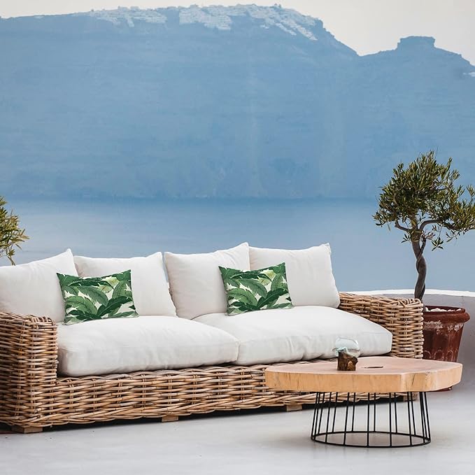 LVTXIII Set of 2 Patio Lumbar Pillows, 12”x20” Fade Resistant Outdoor Lumbar Pillow with Inners, Fluffy Decorative Garden Lumbar Cushions for Home Patio Coach Sofa Use, Swaying Palms Green