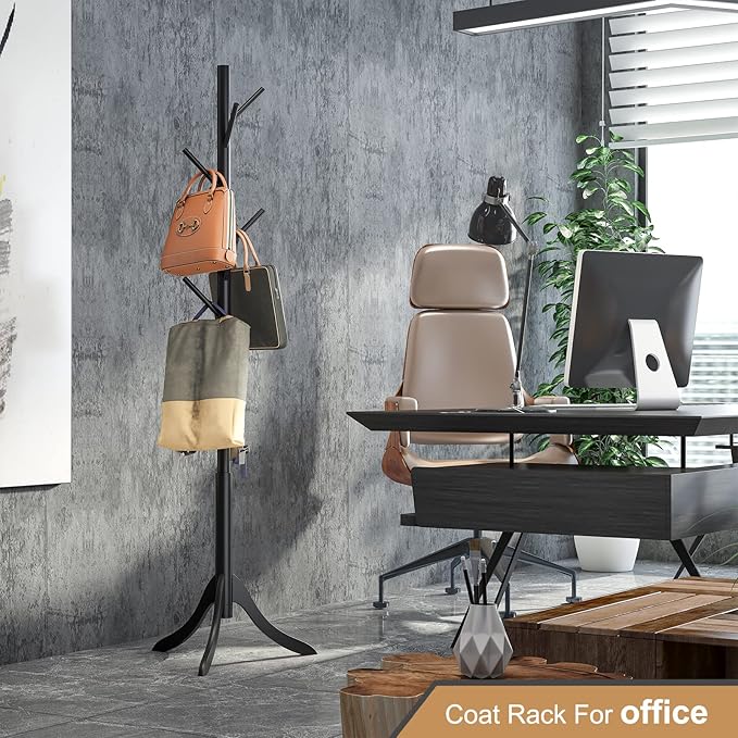 - 【Space-Saving Design】Despite its compact footprint, the coat rack has a strong storage capacity. It features 8 sturdy hooks that can hold a variety of items such as clothing, hats, backpacks, ties, umbrellas, and more
