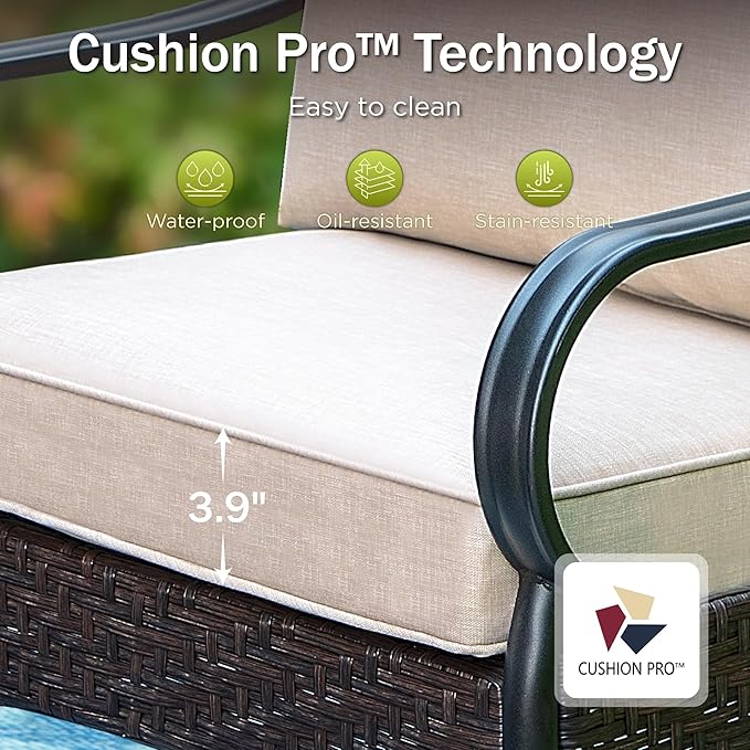 - ๐๐ผ๐บ๐ณ๐ผ๐ฟ๐๐ฎ๐ฏ๐น๐ฒ ๐ฃ๐ฎ๐ฑ๐ฑ๐ฒ๐ฑ ๐๐๐๐ต๐ถ๐ผ๐ป๐: Every metal dining chair comes with extra large seat cushion and soft pillow, easy to clean. All cushions and pillows are made of texture fabric,which is UV resistant,weather resistant, does not discolor easily