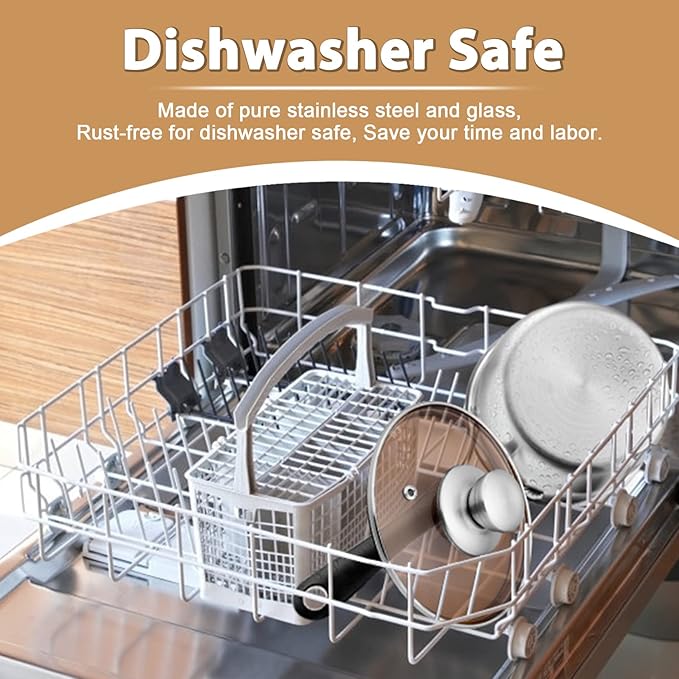 - 【VISIBLE COOKING】Glass lid with steel edge for impact resistance and visible cooking process, To lock the flavor, heat and moisture of the food, Stainless steel saucepan transfers heat quickly and evenly, A relief hole above the lid to avoid water spillage and keep you stove clean